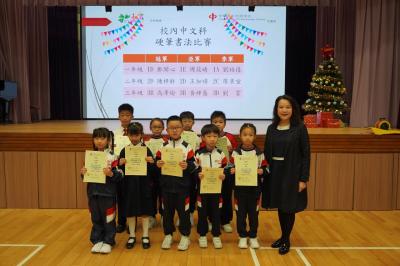 本學年中文科校內硬筆書法比賽已於10月份完成,低小組書法內容配合校本價值觀教育,高小組書法內容則配合校本冊《二十四節氣》。同學們均用心書寫,並透過比賽培養對文字的美感及文化的興趣。比賽結果如下: